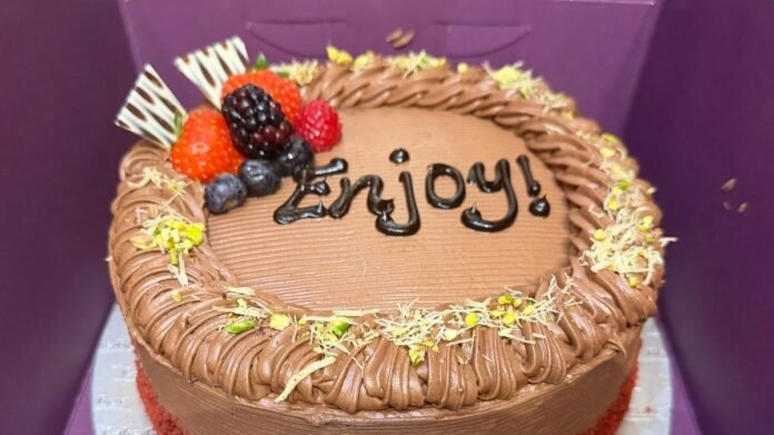 Many have praised Cake Box’s eggless cakes for being exceptionally light and fluffy, leading some to describe them as the “nicest, fluffiest cakes ever.” The bakery’s Red Velvet Dubai Chocolate Cake, a popular choice, features a red velvet sponge layered with pistachio cream and a unique Dubai mix, topped with Nutella piping, suter pheni, pistachios, and fresh berries.
