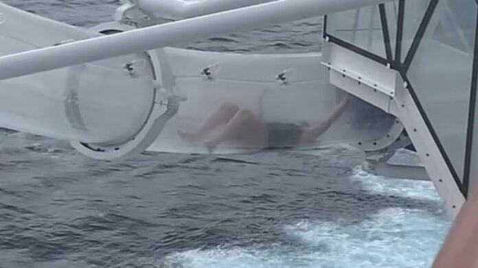 A shocking incident unfolded when a cruise passenger found herself stuck inside a water slide positioned 100 feet above the ocean. The distressed woman’s plight captured attention as she struggled in what seemed to be a Norwegian Cruise Line’s Loops slide, causing alarm among onlookers who witnessed her futile attempts to move forward with outstretched arms.